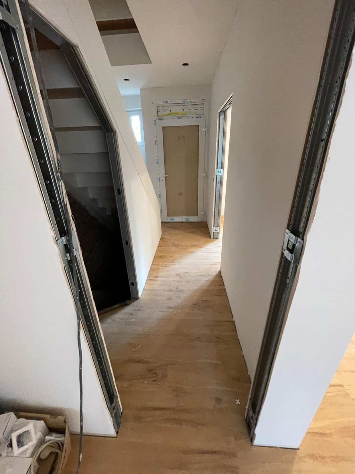 Egal, ob indirekte Beleuchtung mit Abkastungen, innenliegende Schiebetüren mit dem Knauf-System Pocket Kit, Vinyl- oder Laminatböden, Türzargen, Türblätter oder Fenster mit dem Easy Win-System von Knauf für mehr Licht – wir kümmern uns um einen reibungslosen Innenausbau.